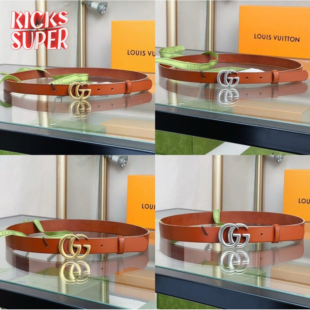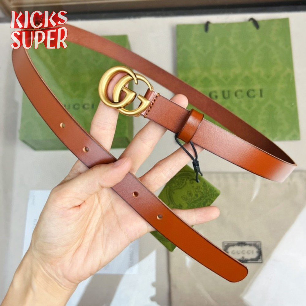 GUCCI LEATHER BELT WITH DOUBLE G BUCKLE