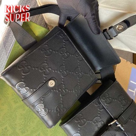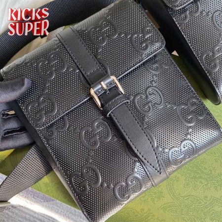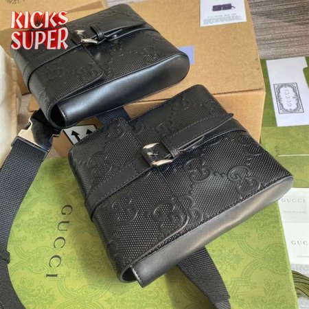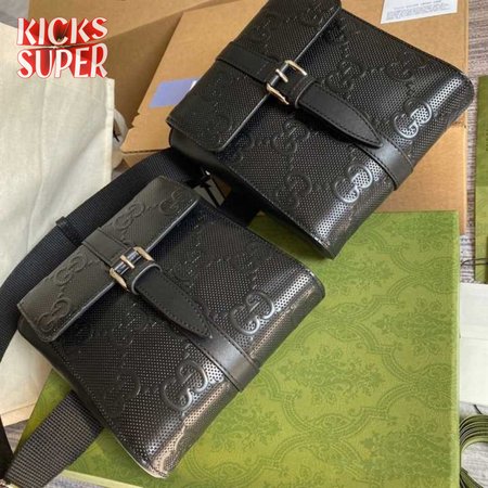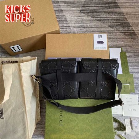 GG EMBOSSED BELT BAG BLACK GG EMBOSSED LEATHER COTTON LINEN LINING - GBC16