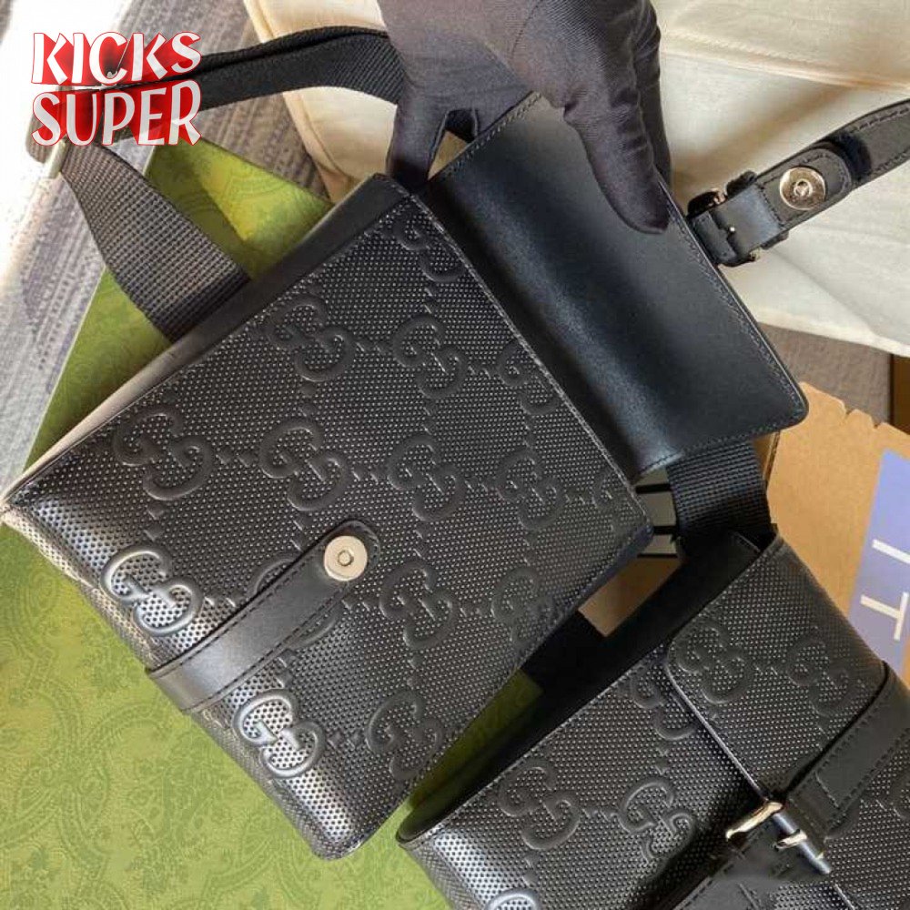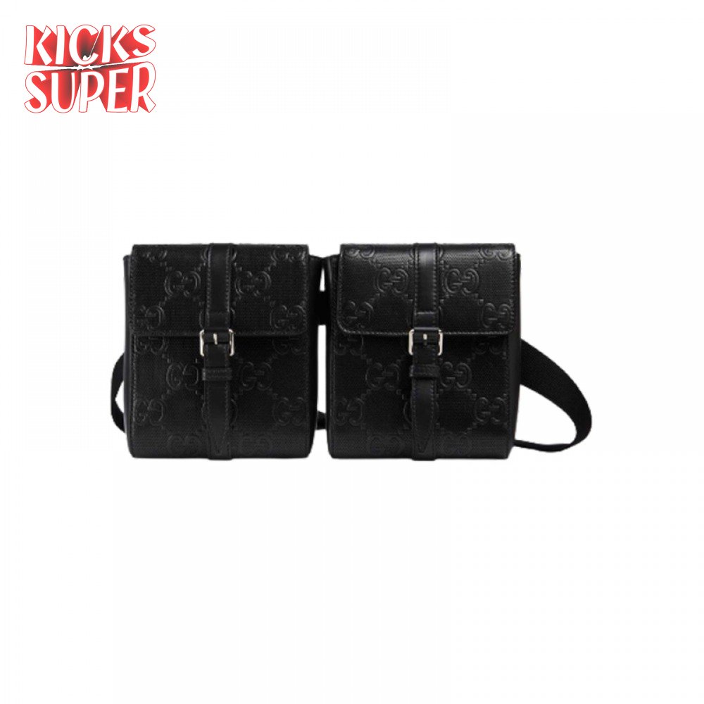Gg Embossed Belt Bag Black Gg Embossed Leather Cotton Linen Lining GBB021