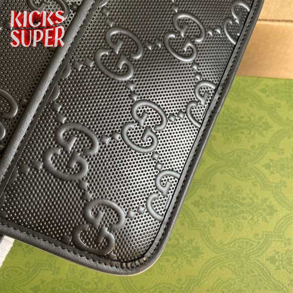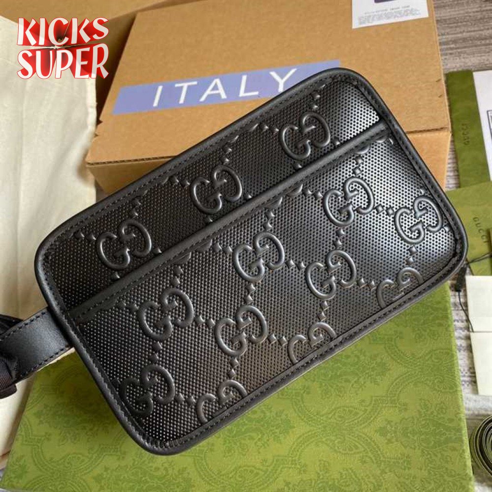 Gg Embossed Cosmetic Case Black Gg Embossed Leather Cotton Linen Lining GBB020