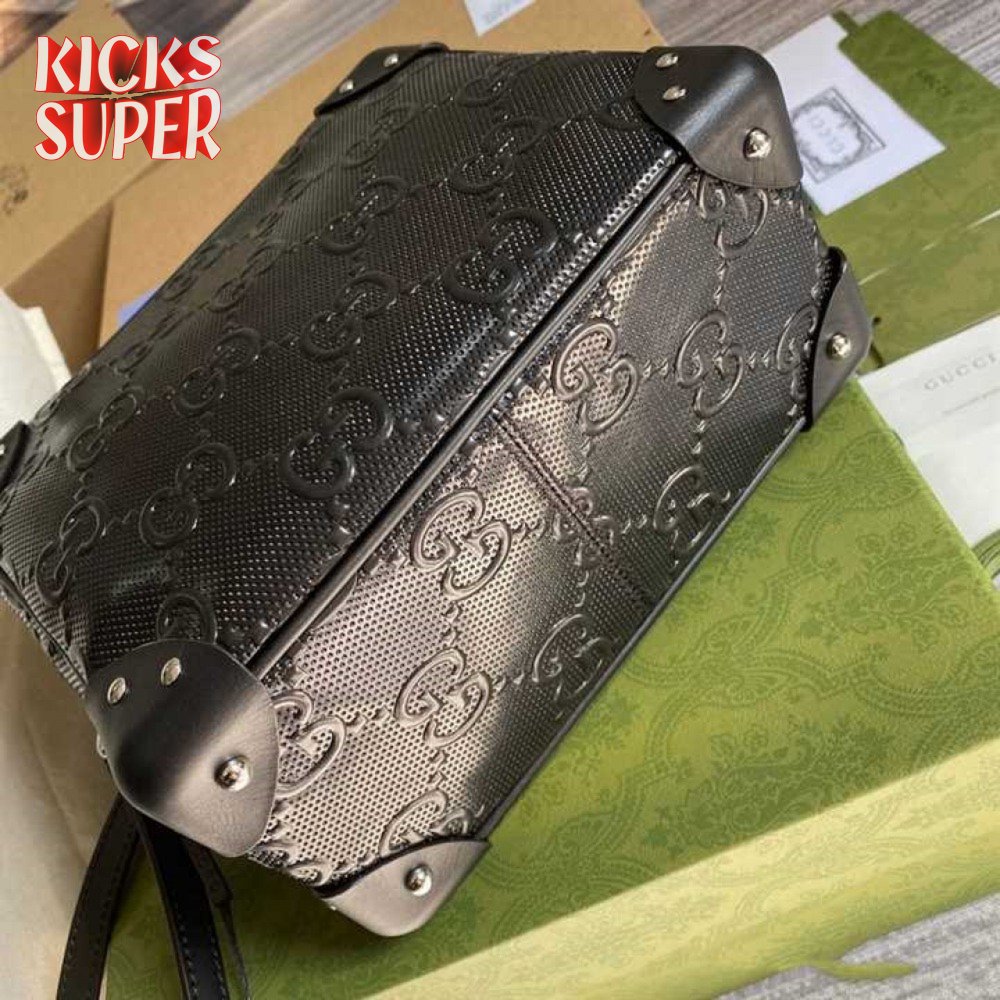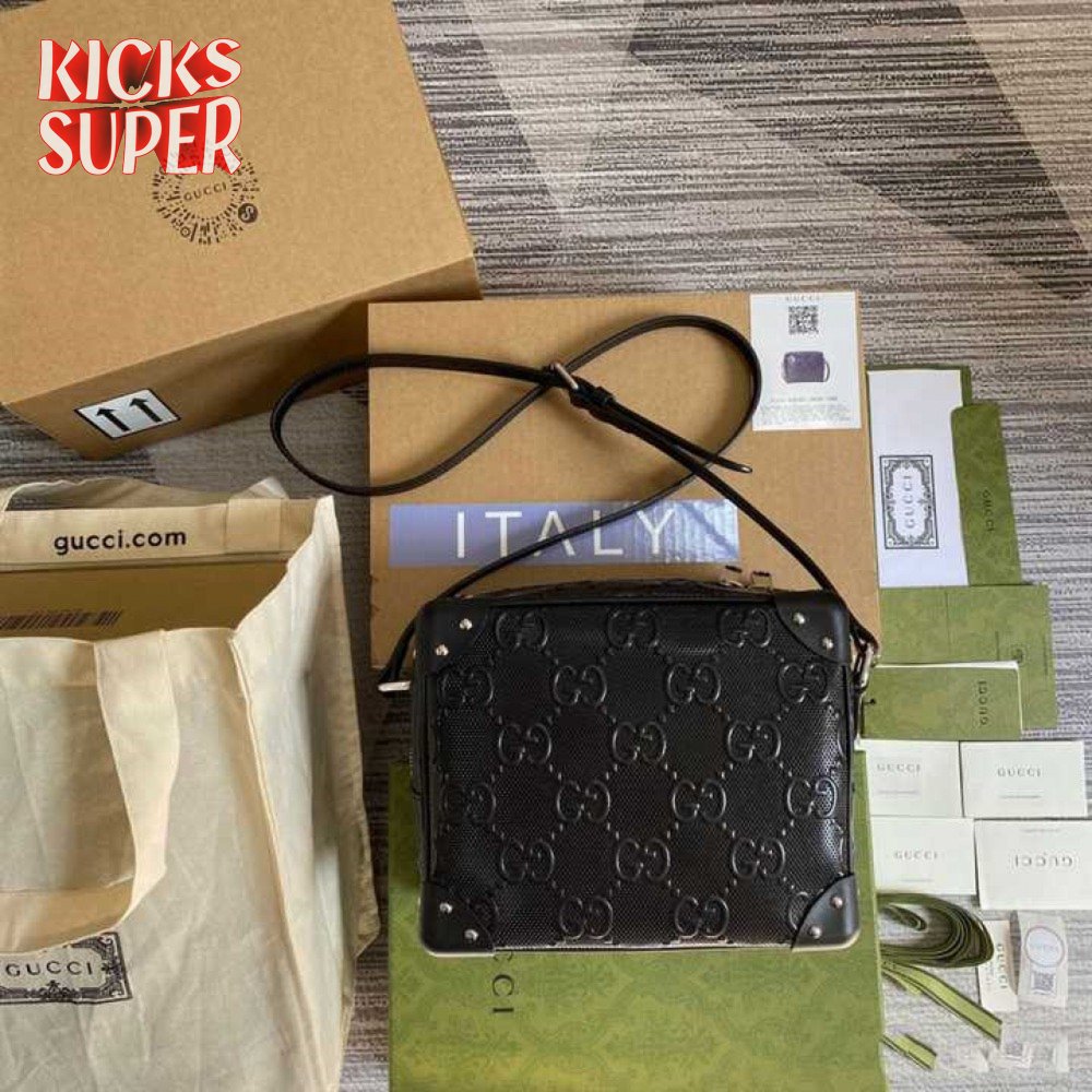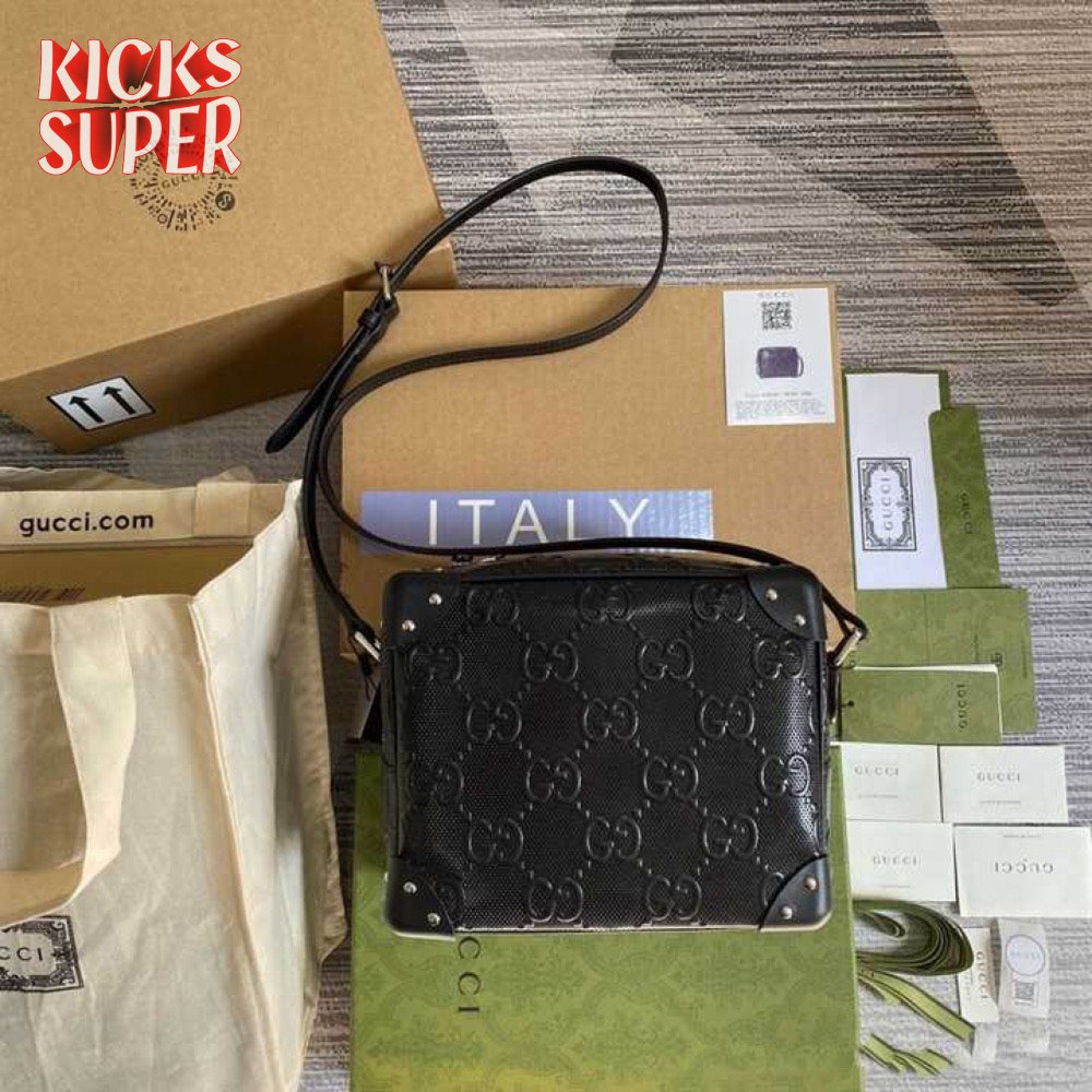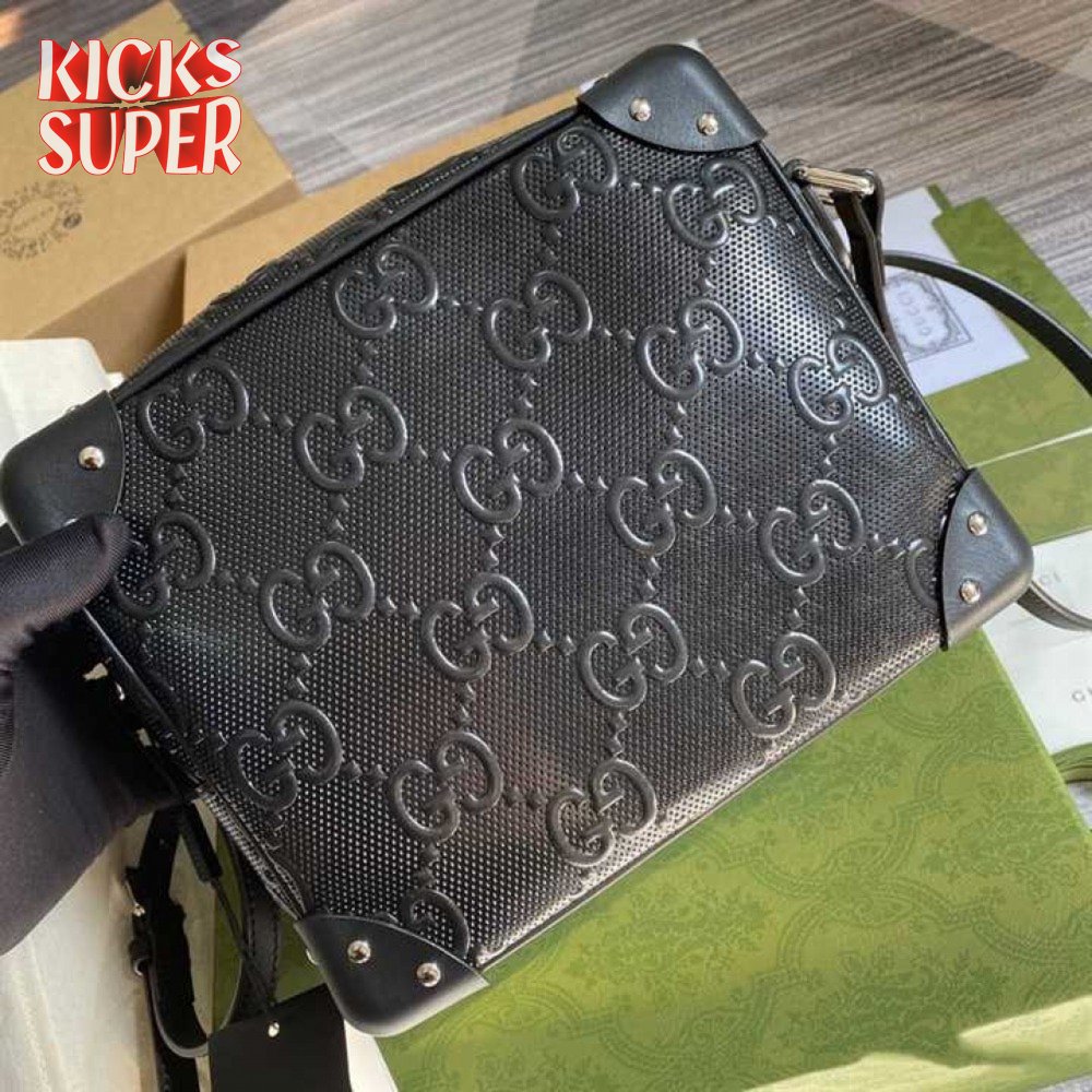 Gg Embossed Shoulder Bag In Black Leather GMB011