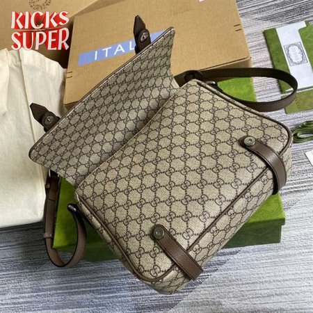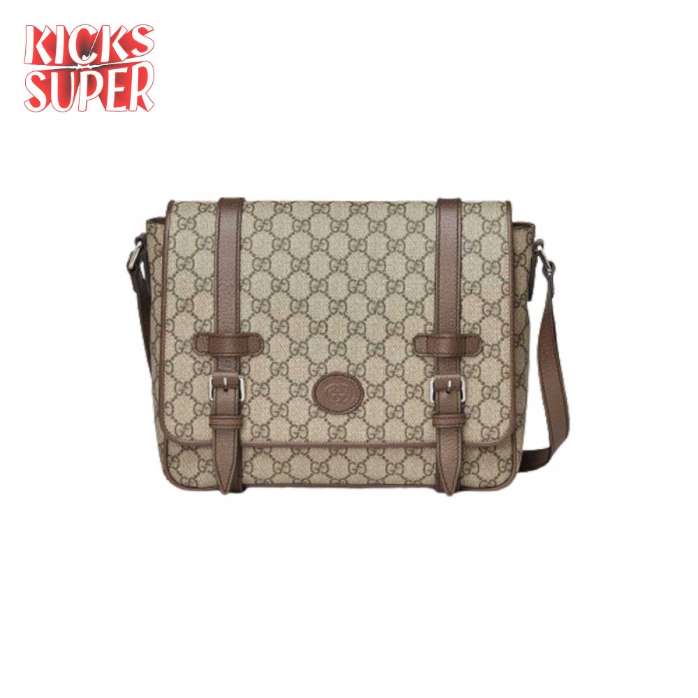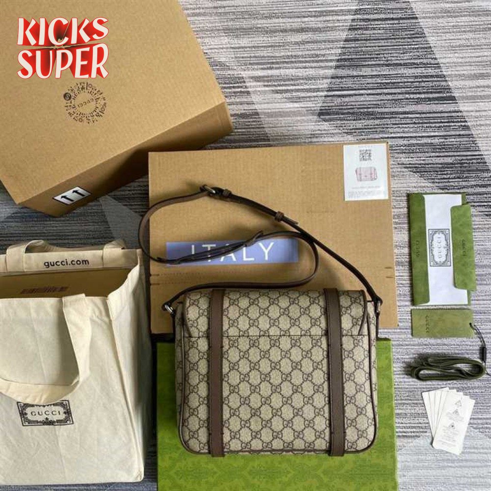 Gucci Messenger Bag Beige/Ebony Gg Supreme Canvas Brown Leather Trim GMB008