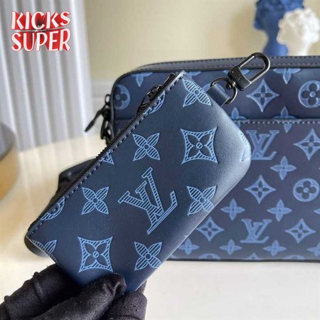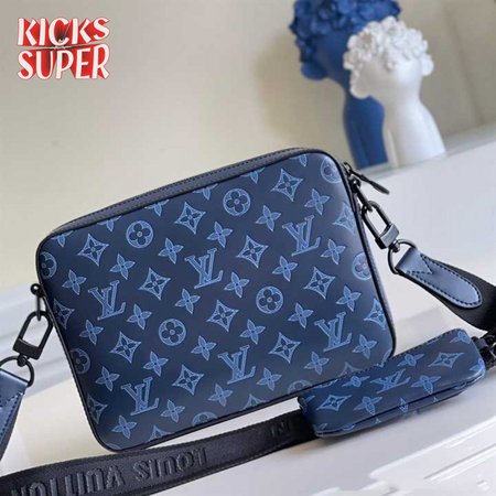 Louis Vuitton Duo Messenger Bag Navy Blue Monogram Shadow Cowhide Leather - MB01